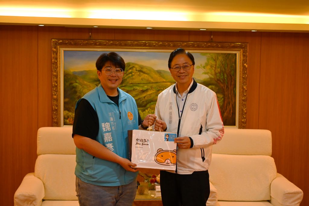 雙方會談氣氛熱絡,魏市長更親自贈送麻糬給張市長,盼促進雙方情誼並帶動地方經濟。針對桃園近240萬的人口,魏嘉彥也誠摯邀請市民來花蓮體驗不同風貌,並介紹多項市府推廣活動,包括「奇萊玩一夏」自行車輕旅行與「太平洋縱谷馬拉松」,邀請各地民眾夏季一起感受花蓮的熱情與魅力。