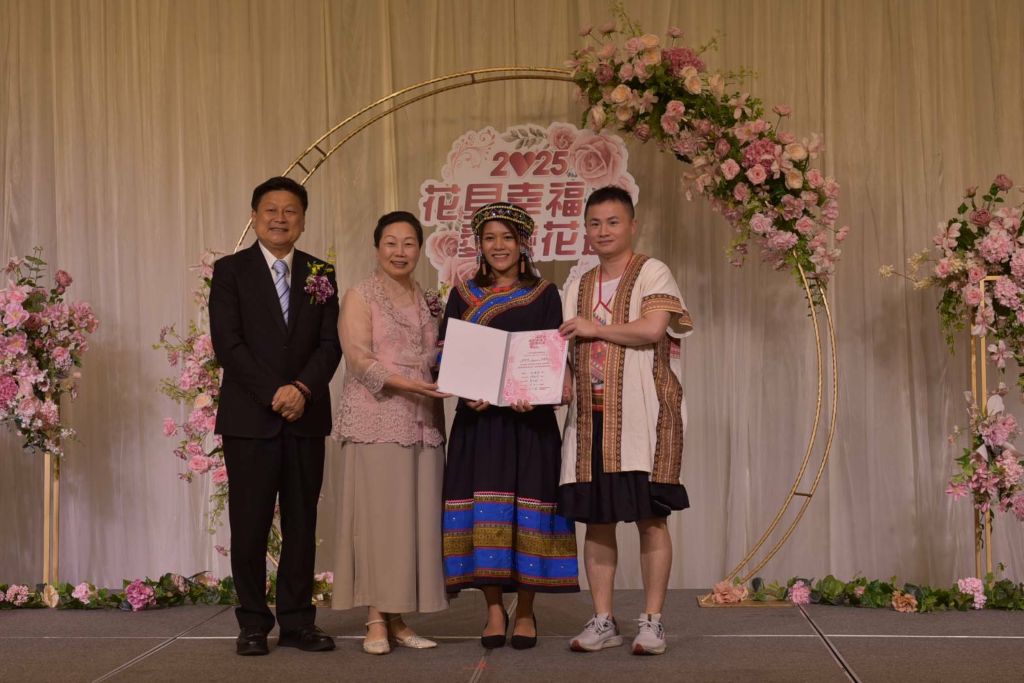 在春暖花開的季節裡,花蓮縣政府25日於遠雄悅來大飯店舉辦「114年春季集團結婚」,本屆婚禮以「繁花盛開.百花齊放 花見幸福.愛戀花蓮」為主題,31對新人在親友的祝福與壯麗山海的見證下,許下終身承諾,現場洋溢著幸福與感動。