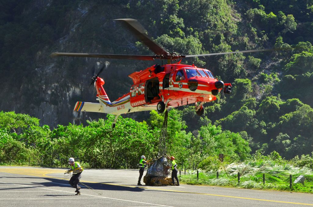 在部落、民間及政府部門合力投入下,去年7月8日黑鷹直升機分3架次,順利將怪手吊運至部落,成為部落道路修復工程的重要助力。