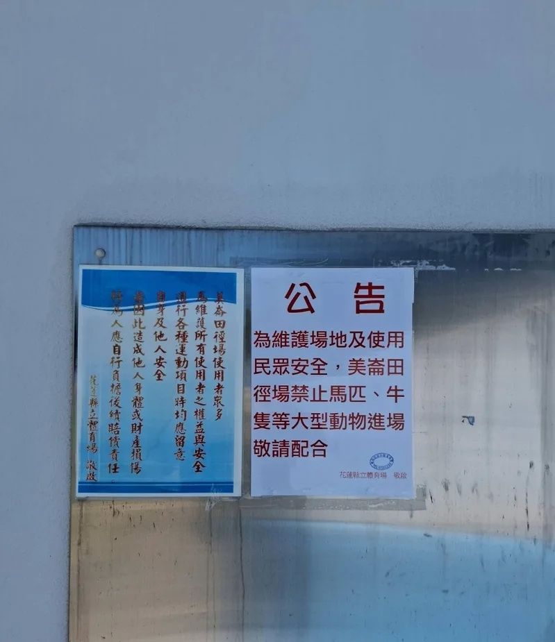 花蓮田徑場驚見「遛馬」!網友熱議 場方急貼告示全面禁止