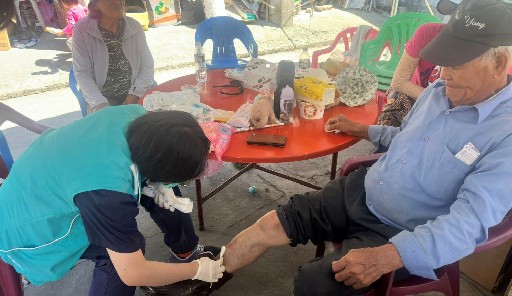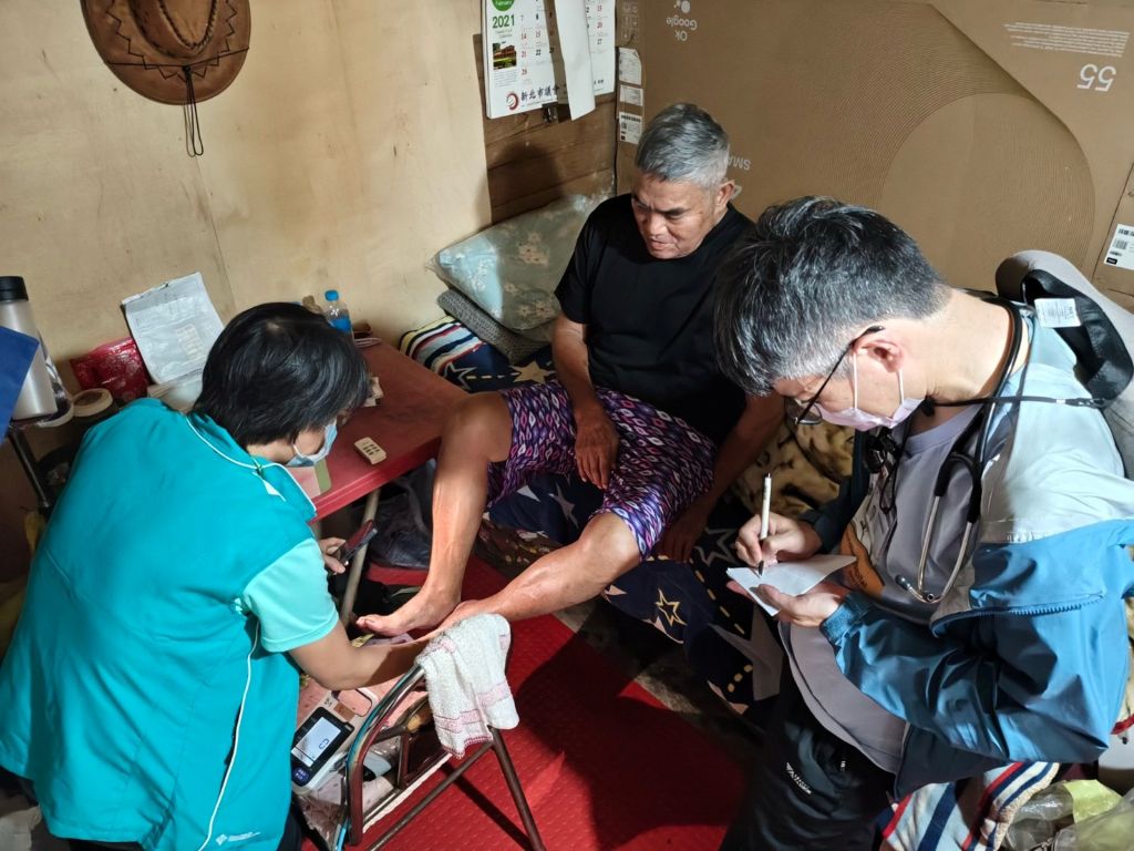 除了固定駐點提供內科診療與送藥服務,醫療團隊更主動組成「家訪醫療小組」,特別關懷行動不便、交通受阻的長輩。就算是在民眾家中的客廳或門口,醫師也會就地看診、換藥,讓長輩在家中也能獲得即時照護。