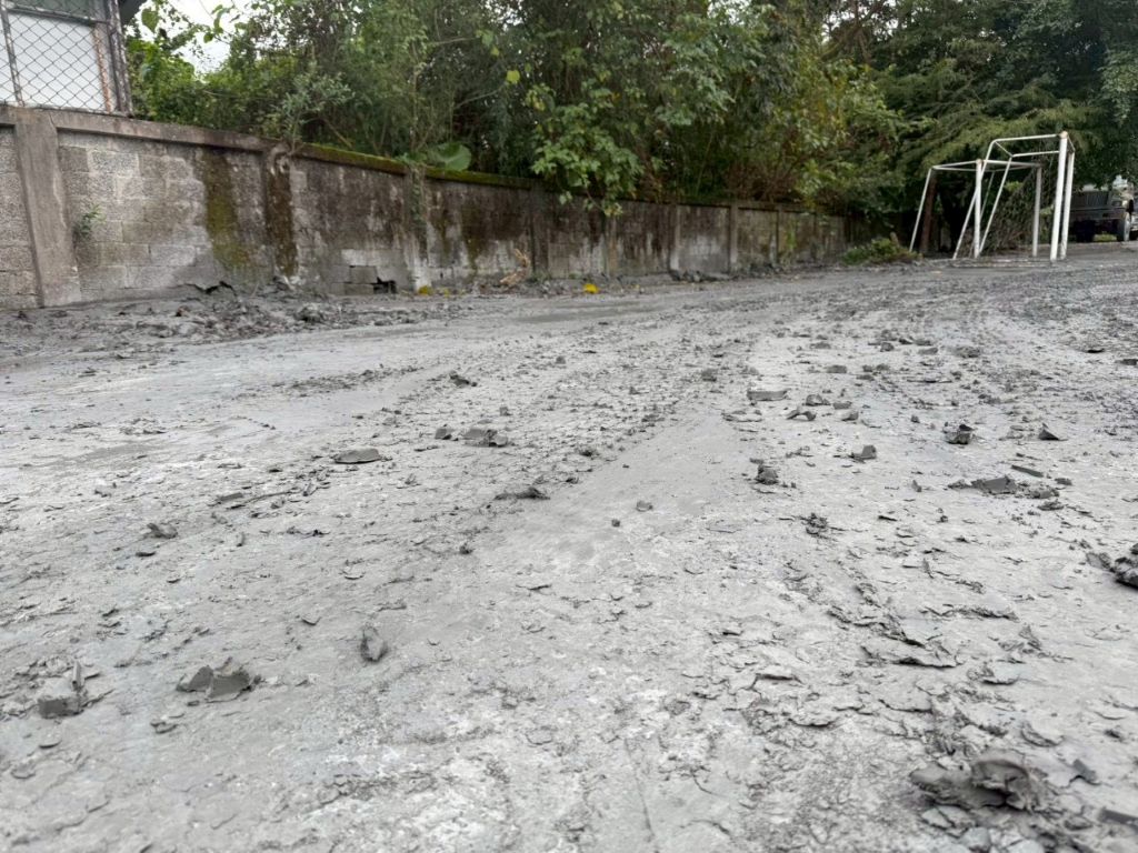 受鳳凰颱風豪雨及馬太鞍溪堰塞湖溢流影響,萬榮國中遭泥水從南側圍牆縫隙湧入,活動中心至校門口一帶的地坪全面覆蓋泥沙,嚴重影響學生動線與校園安全。