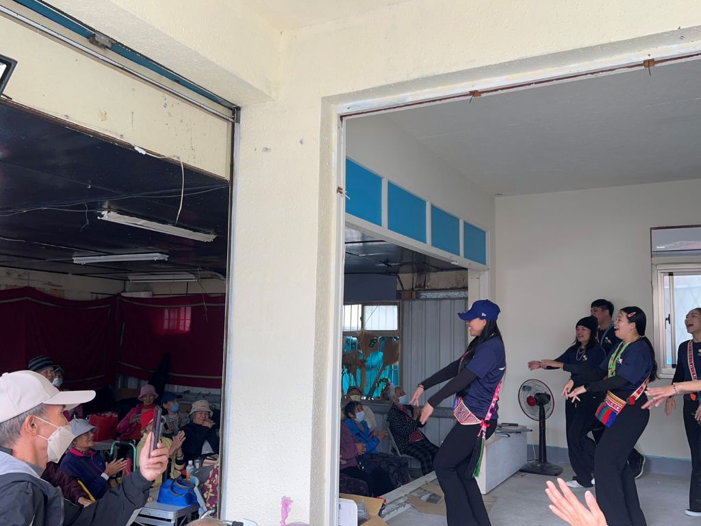 抵達馬太鞍後,長者們早已帶著笑容迎接。演出開始後,有人一邊唱、一邊比動作,也有人在靜靜聆聽時眼眶泛紅。一位阿嬤在律動中握住團員的手,哽咽地說:「你們的歌,讓我們的心亮起來,洗掉我們的眼淚。」一句感謝,像是一股直抵心底的力量,讓人重新獲得支持。
