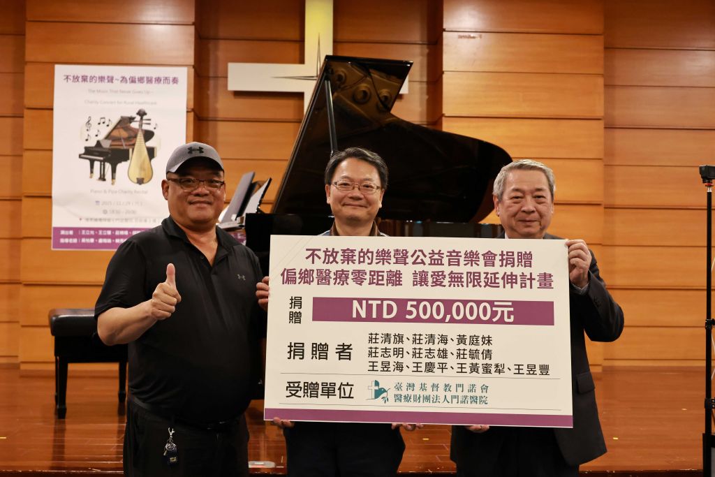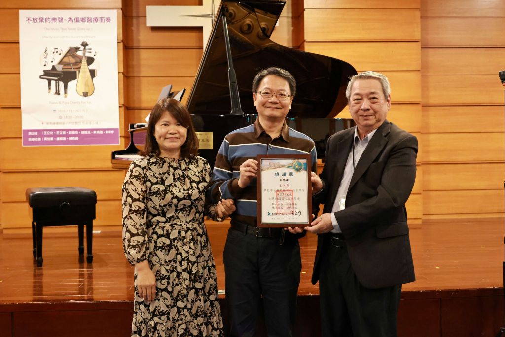 門諾醫院院長莊永鑣全程參與這場公益音樂會,並親自頒發感謝狀給王昱豐與莊美華一家,感謝他們不僅自己投入,更號召親友共同響應,讓偏鄉醫療在最需要的地方獲得支持。莊院長表示,這份善意不只是金額的捐助,更是一種力量,提醒醫療團隊「我們並不孤單,各界的善心人士一直在身邊陪著我們前行」。他也談到:「偏鄉醫療是一條漫長的路,但每一份善心,都能讓這條路走得更穩、更遠。」