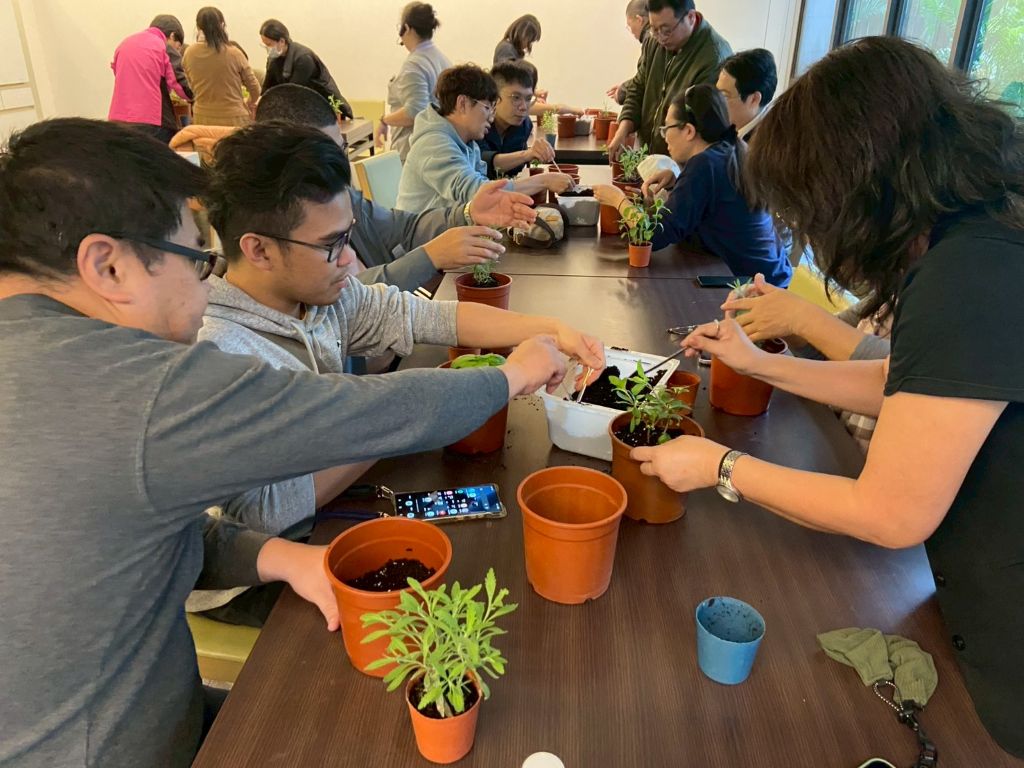 工作坊亦安排參訪酒店綠色設施及有機香草園。秧悦美地長期推動節能減碳與「有機綠食、低碳旅遊」,並於2023年取得GTS國際綠色旅遊兩星級認證,成為花東永續旅遊示範。參與同仁透過香草換盆及導覽,實際了解有機農業及永續旅宿如何落實環境友善與社會責任。