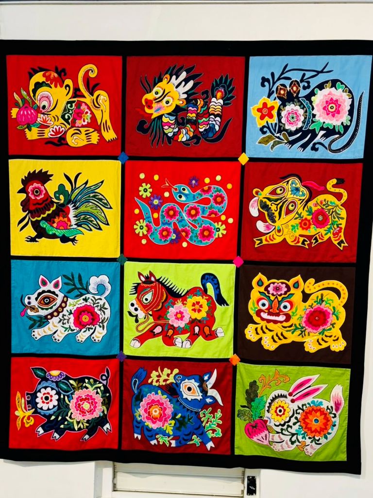 展場中亦陳列多件國際得獎作品,包括劉佩蕾榮獲海峽兩岸文博會銅牌獎的《十二生肖》,以及鄭瑞蓮於杜拜國際拼布競賽奪冠的《巴爾的摩的秋天》。其中,高齡80歲的鄭瑞蓮仍持續創作,其專注與熱情令現場觀眾深受感動。