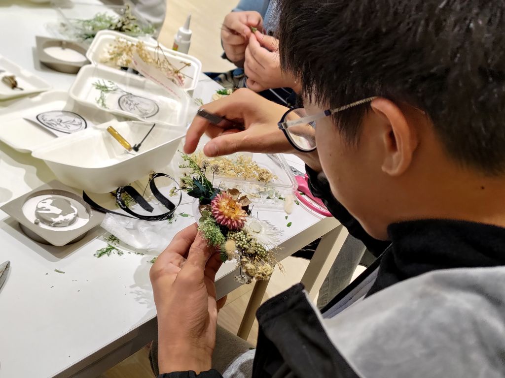 另一場活動以療癒系香氛為主題,主理人帶領參加者製作獨一無二的香氛石。從選擇香氣、石膏灌模到用各自運用繽紛花材裝飾香氛石,每個步驟都充滿創意與樂趣。現場瀰漫著薰衣草、甜橙與雪松的自然香氣,讓人彷彿置身森林秘境。完成的香氛石不僅美觀實用,更成為參加者心中獨特的生活小物,有些也即將成為聖誕佳節送給親友的一份心意。