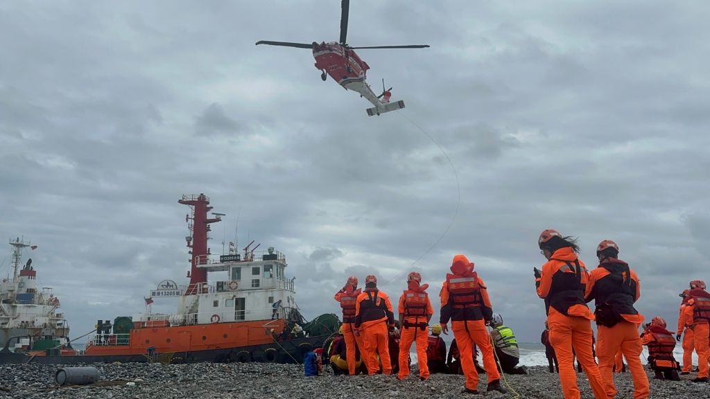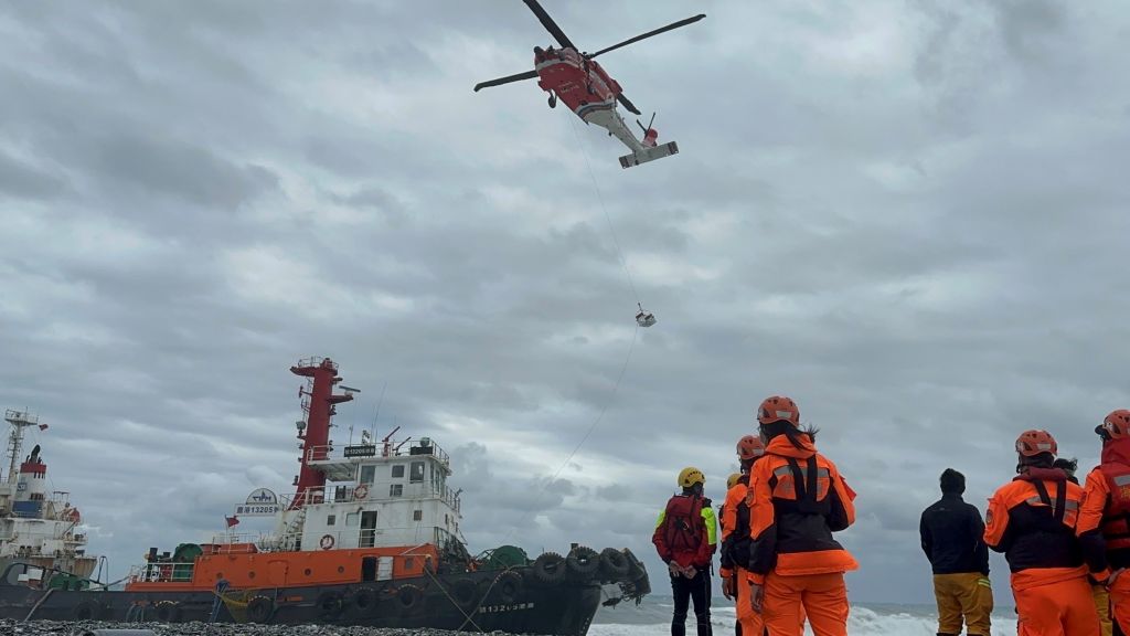 東北季風強襲 貨輪花蓮擱淺救援受阻 黑鷹吊掛救人