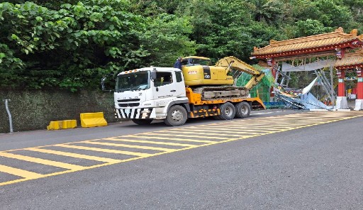 怪手車撞中橫牌樓施工架 構台嚴重變形將拆除重整