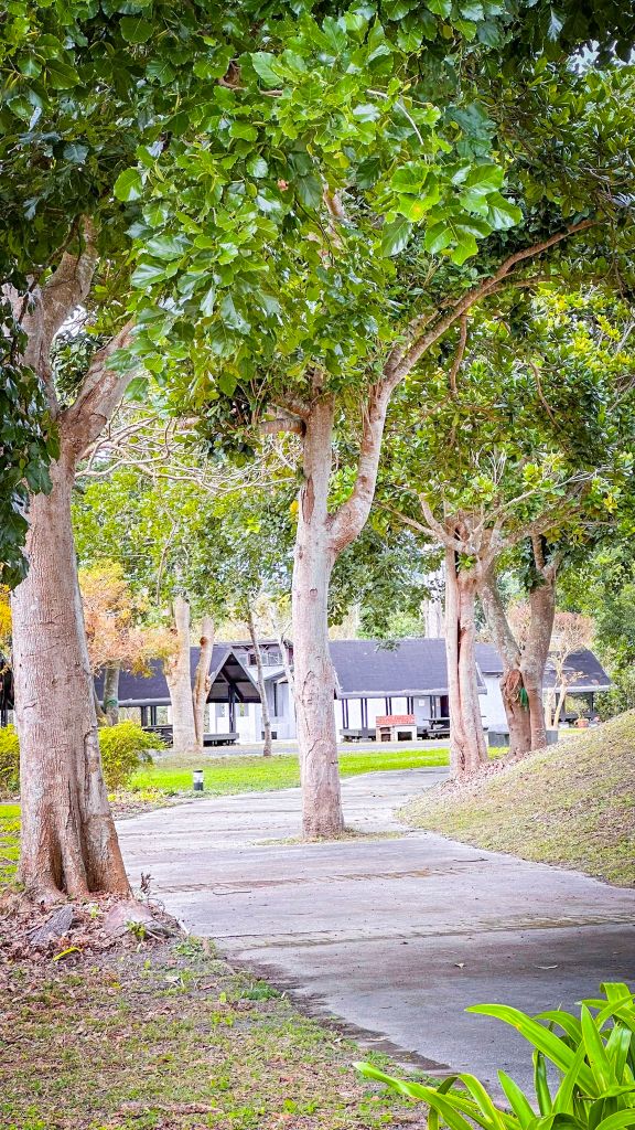 委外經營團隊指出,園區目前規畫29個有頂木棧板營位,棧板棚架高度約270公分,可遮陽避雨並隔絕地面濕氣,降低天候對露營活動的影響,讓露營新手與親子家庭也能較為輕鬆上手;同時保留通風與自然採光,維持戶外露營的體驗特色。