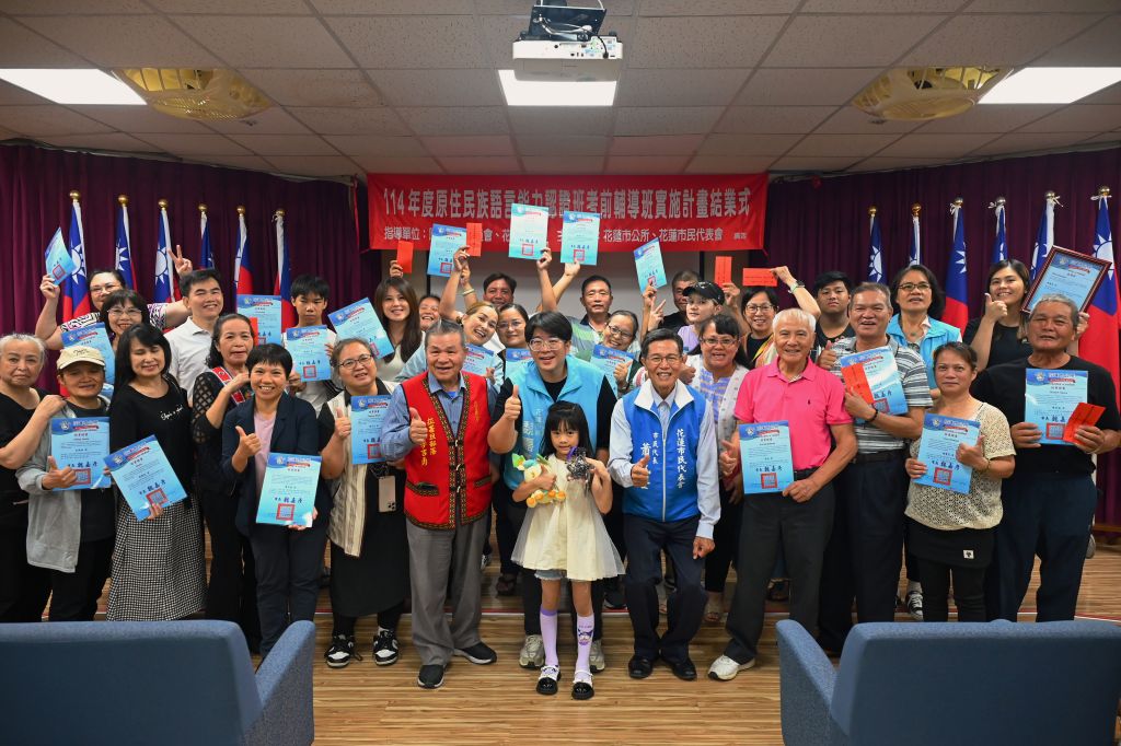 魏嘉彥進一步指出,市公所於去年的族語認證班中,成功協助19位族人朋友取得認證資格,其中初級4人、中級12人、中高級3人;尤其報考太魯閣族語的學員,更在中級認證考試中榮獲榜首佳績,展現族語學習的豐碩成果。期盼今年能吸引更多族人加入學習行列,讓族語在花蓮持續發聲、生根茁壯。