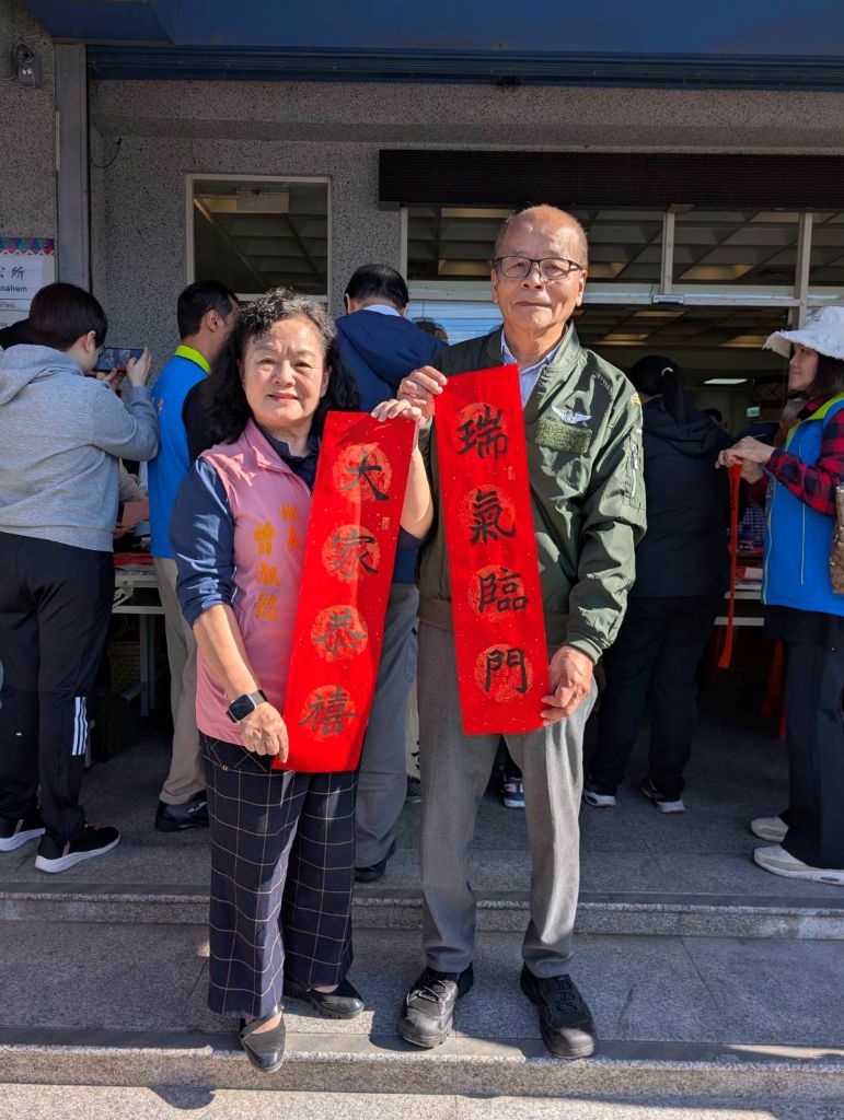 農曆新年將近,壽豐鄉公所6日上午在公所大門口舉辦客製化新春免費贈春聯活動,邀請多位書法名家現場揮毫,為鄉親送上滿滿年節祝福。鄉長曾淑懿在夫婿劉耀宗陪同下到場向民眾致意,與鄉親共享過年喜氣,現場墨香四溢,索取春聯人潮絡繹不絕。