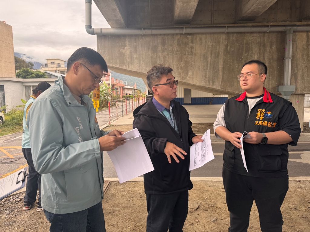 為活化花蓮市十六股橋下閒置空間、提升公共環境品質,花蓮市民代表會主席楊哲灃、副主席黃達祥及多位代表日前一同前往現場會勘,實地了解橋下空間現況,並就未來整體規劃方向進行討論,針對場域配置與安全設計等細節交換意見。