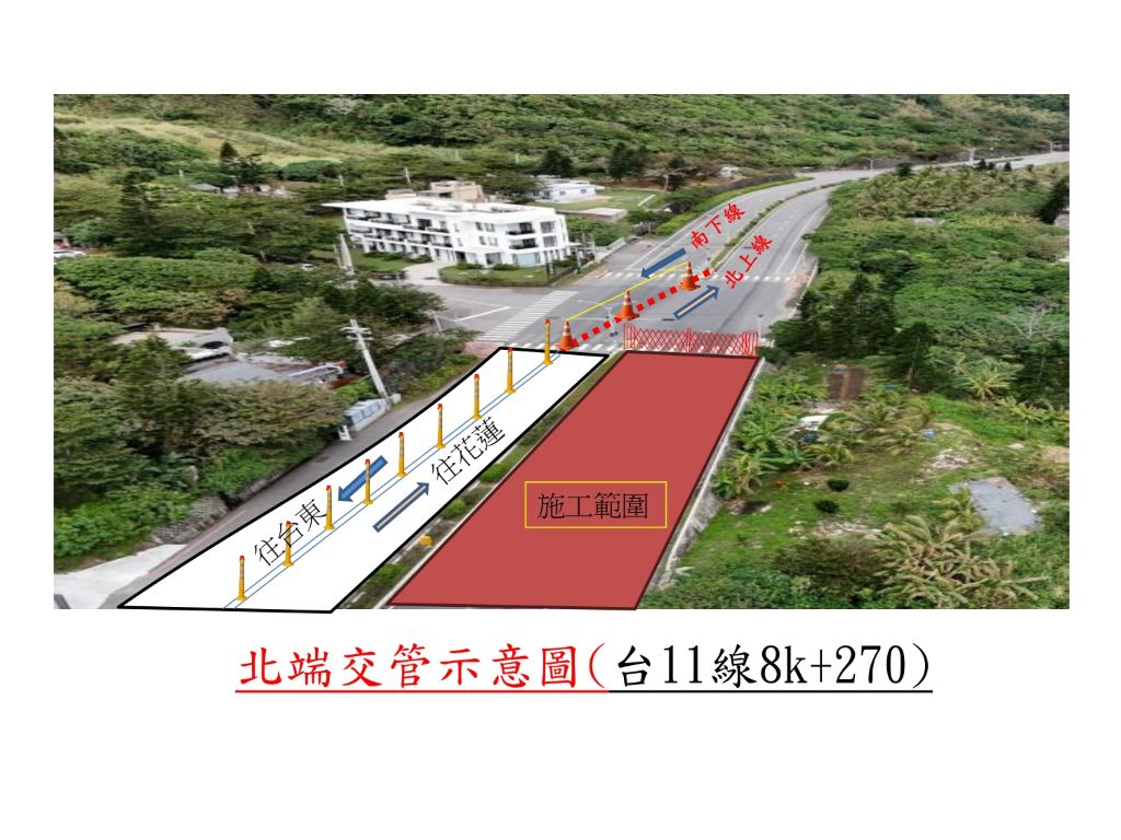 依規劃,自3月16日起該路段北上車道將全天候封閉,所有車輛改由南下車道採雙向通行的臨時配置,現場也會設置交通導引設施。相關單位提醒,駕駛人行經施工路段時務必依照標誌與交通指揮行駛,並降低車速,以確保自身及施工人員安全。