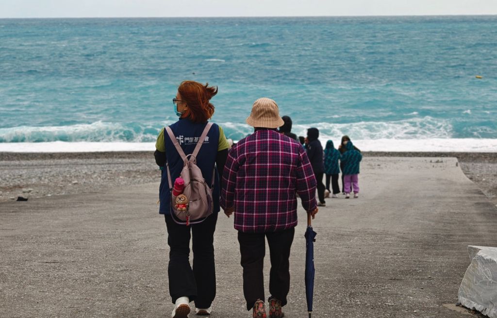 過程中,孩子們也展現細膩的體貼,主動攙扶長者、提醒台階安全。77歲郭阿嬤原本因行動不便不想走到海岸,但看到孩子們興奮尋寶,在工作人員陪伴下也鼓起勇氣前行,最終在海風中完成任務,露出滿足笑容。