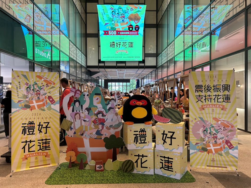 花蓮縣政府為振興商圈經濟,於6月15日至16日,帶領在地商圈組織及小農在新北市新莊宏匯廣場舉辦「震後振興,花蓮依然美好!」展售會,吸引不少民眾前往支持花蓮。