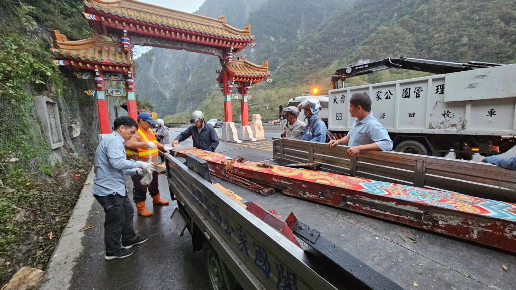 太魯閣牌樓遭清運卡車撞損 太管處啟動搶修