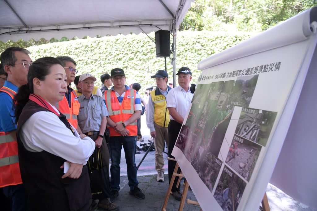 0403地震衝擊花蓮經濟與基礎建設,花蓮縣政府持續推進災後復建工作,花蓮縣長徐榛蔚今(22)日陪同行政院長卓榮泰及相關部會人員,上午前往太魯閣國家公園聽取簡報,了解太魯閣災損情形及搶災復原工程進度等。