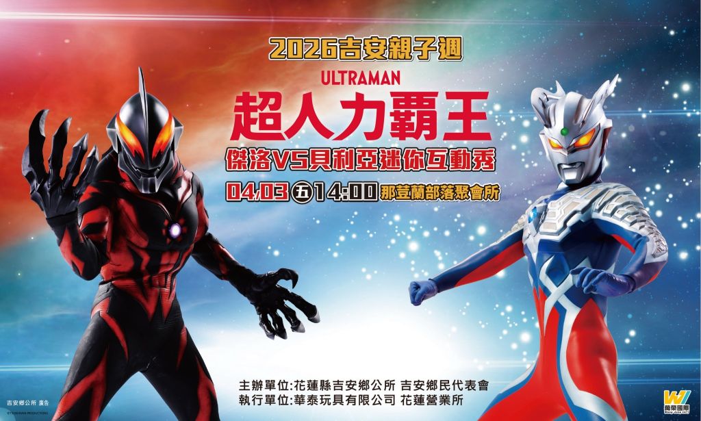 引頸期盼的兒童節假期即將到來,花蓮縣吉安鄉將於4月3日(星期五)上午10時至下午5時,在那荳蘭部落聚會所舉辦「2026吉安親子週-卡通見面會!」,活動結合「超人力霸王傑洛」與宿敵「貝利亞」的現場互動演出、創意市集與多元才藝表演,預計吸引超過千名親子共襄盛舉,點燃花蓮親子活動的熱潮。