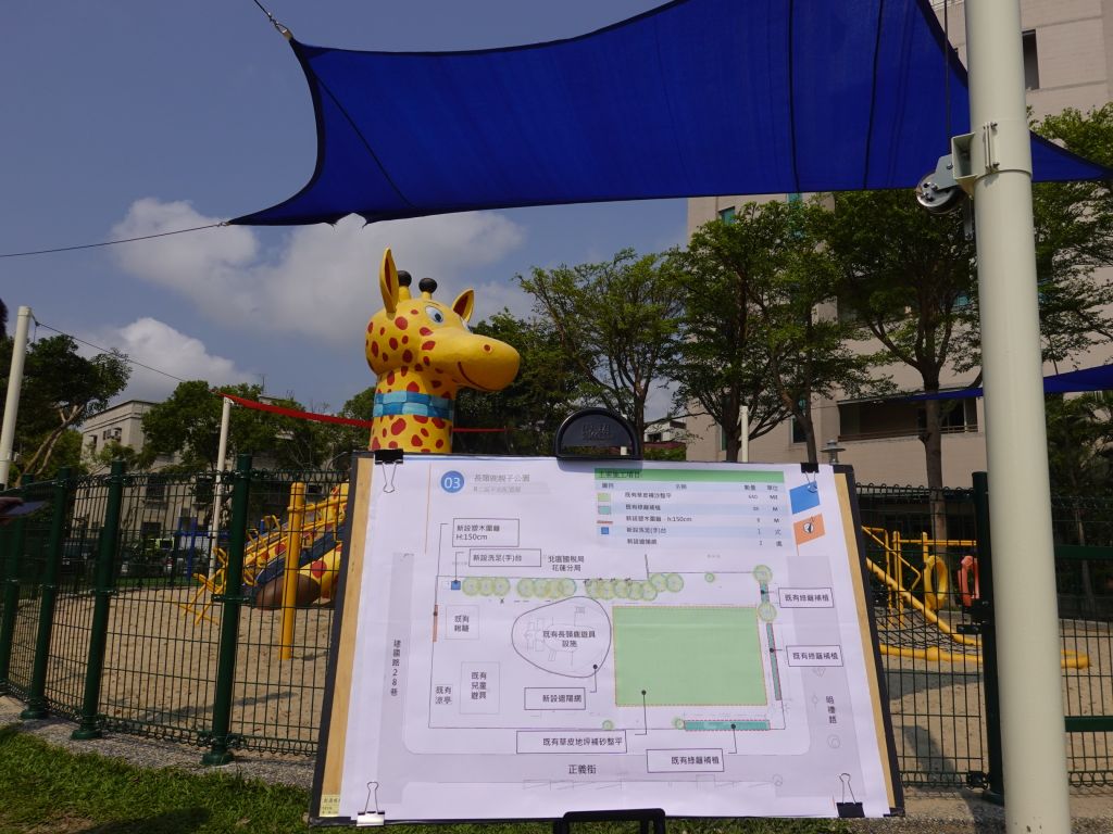 至於「長頸鹿公園」則納入總經費2800萬元的遊憩場改善計畫,目前已完成遮陽網設置,後續將進行草皮整平、綠籬補植及洗手洗腳設施建置,並於周邊增設樹籬與塑木圍籬,有效區隔車道空間,降低孩童誤闖風險。