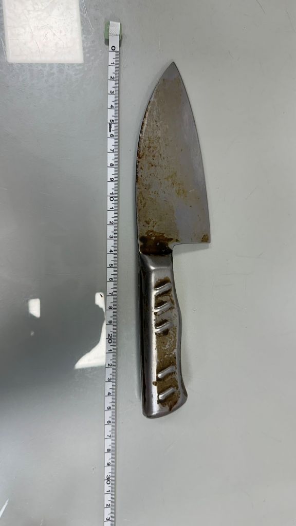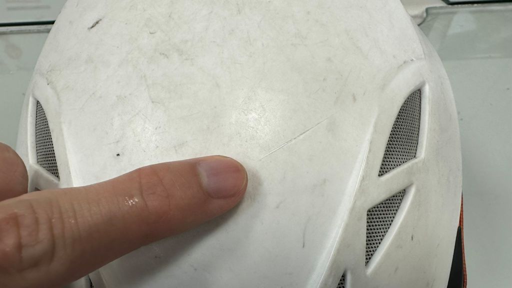 沒想到就在過程中,婦人竟突然將其中一把利器擲出,當場擊中救護人員頭盔,留下約2.5公分刮痕,所幸有頭盔防護,未造成人員傷亡。遭攻擊的救護員回憶,當下閃避不及,至今仍心有餘悸。