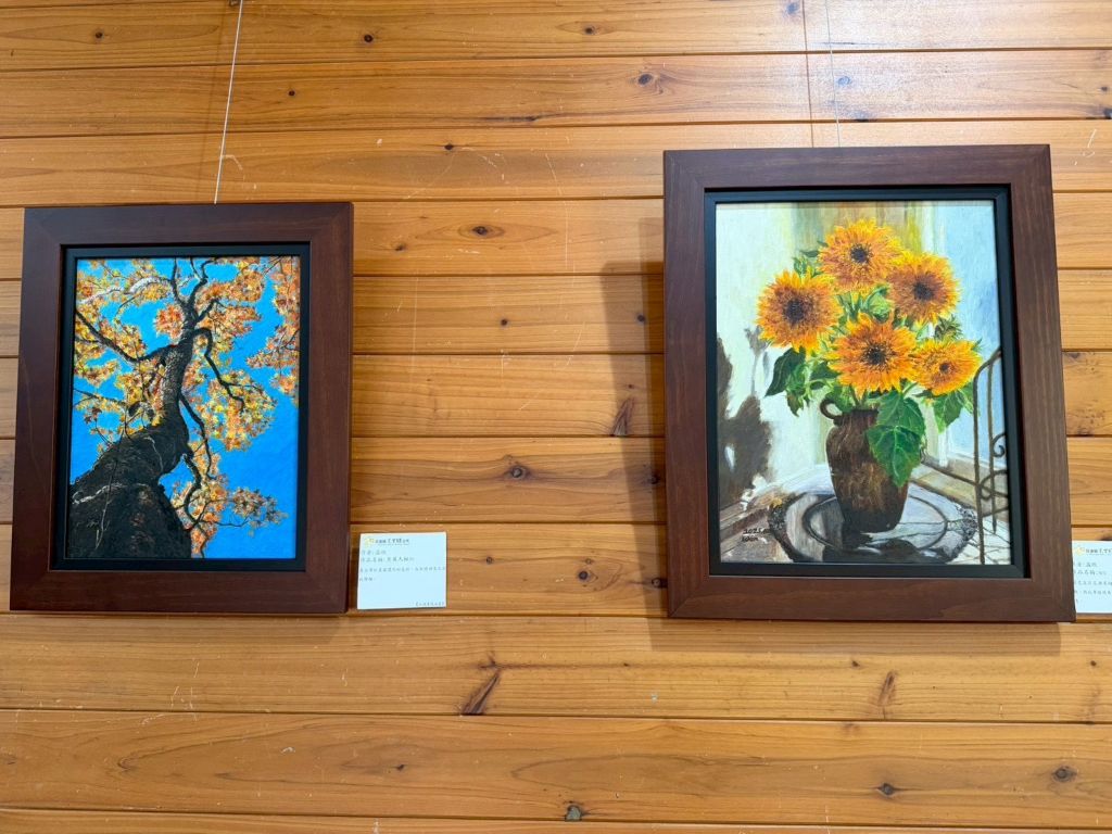 本次展覽由在地藝術創作者温欣老師策展,她原為台灣銀行退休員工,退休後返鄉投入藝術創作,向老師學習素描與油畫,持續精進畫藝,將生活轉化為創作靈感。此次展出作品,不僅展現紮實的油畫功力,更融入石頭畫創作,展現跨媒材的藝術能量。