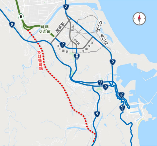 目前用路人自國五南下前往花蓮,需由蘇澳交流道下匝道後穿越市區,再銜接蘇花改,不僅增加行車時間,也加重地方交通負擔。為此,高公局規劃自國五蘇澳端興建高架道路,向南延伸約6.8公里,直接銜接蘇花改東澳隧道北口,打造不中斷的快速路網。