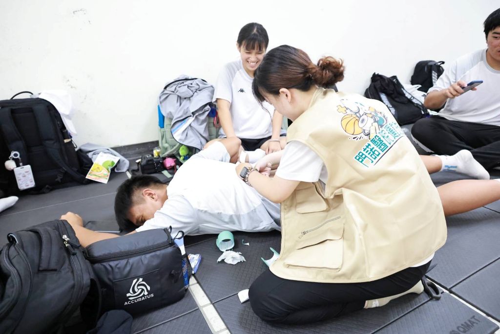 在醫療資源介入後,狀況逐步調整。門諾醫院協助連結訓練場地,同時導入運動防護機制,由物理治療師進入校園,進行身體評估、肌力與柔軟度檢測,並提供動作修正與基礎復健;重要賽事期間,防護團隊隨隊支援,協助熱身、收操及貼紮,降低運動傷害風險。